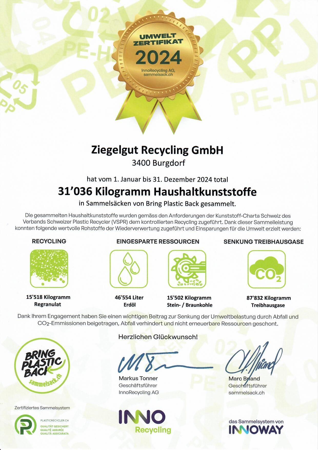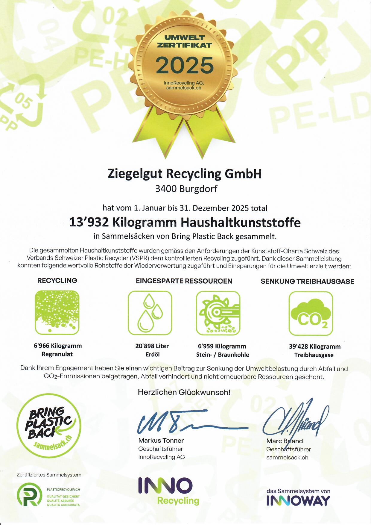 1999 erwarb die Krähenbühl Bau GmbH einen Teil der vormaligen Schachtler Ziegelei in Burgdorf. Die frühere Produktionshalle wurde umgebaut in eine Sortierhalle für die Entsorgung von sämtlichem Material. So entstand der Unternehmenszweig Ziegelgut Recycling GmbH. Das Ziegelgut Recycling-Areal umfasst 12‘500 m2.